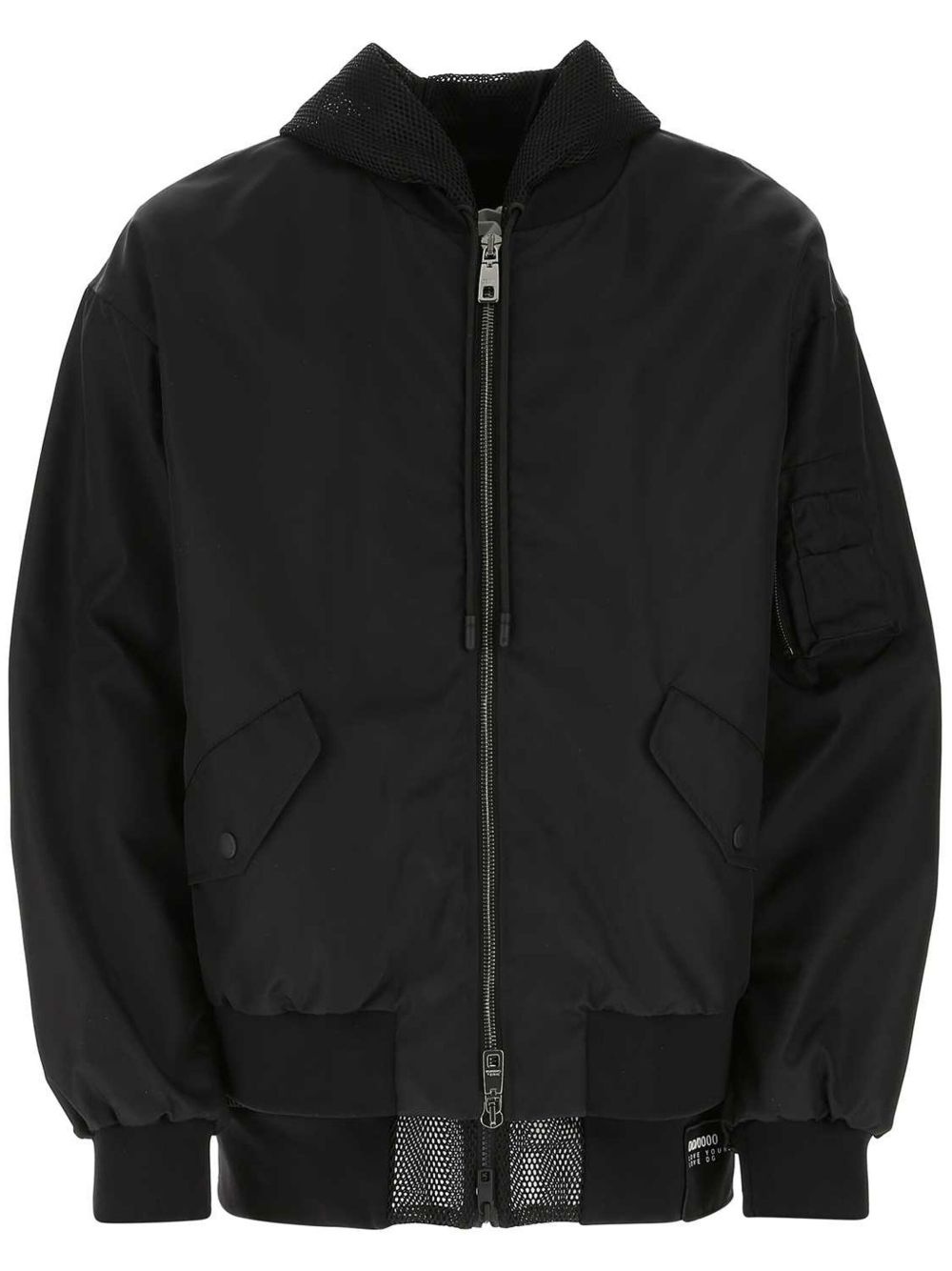 mesh-detail bomber jacket Highlights - Black - Mesh detailing - Front two-way zip fastening - Classic hood - Two side flap pockets - Long sleeves - Sleeve zip pocket - Elasticated cuffs - Straight elasticated hem Made in Italy Composition Polyamide 100%
