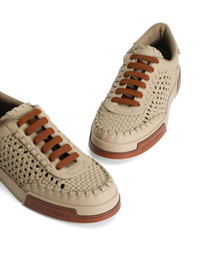 mesh-panelling leather sneakers Highlights - Light beige - Front lace-up fastening - Interwoven design - Flat rubber sole - Logo at the sole Made in Italy Composition Lining: Lambskin 90%, Goat Skin 10% Outer: Calf Leather 100% Sole: Rubber 100%