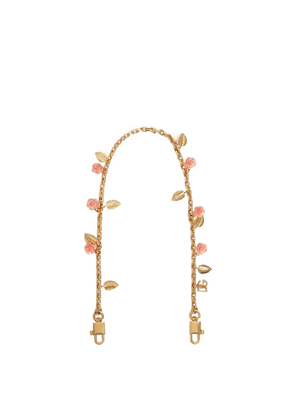 metal shoulder strap with roses Highlights - A distinctive and versatile accessory, the shoulder strap is perfect for adding a touch of elegance to your bags. - Multi-colored - Carabiner closure - Vintage brass plating - External customization with dg cross metal logo - Item equipped with a logo bag and a logoed box - Length: 59 cm - Made in italy Made in Italy Composition Brass 50%, Plastic 50%