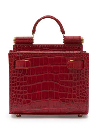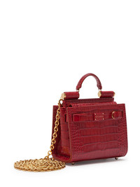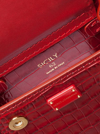 micro Sicily 62 tote bag There's a saying that goes: 'good things come in small packages'. We couldn't agree more, especially if the package contains this ruby micro Sicily 62 tote bag from Dolce & Gabbana. Small but mighty. Highlights - Ruby red - Calf leather - Embossed crocodile effect - Single flat top handle - Detachable chain-link shoulder strap - Metal feet - Gold-tone hardware - Logo plaque - Partitioned compartment - This piece comes complete with a protective dust bag. Made in Italy Composition Outer: Calf Leather 100% Lining: Lamb Skin 100% SIZE & FIT Measurement DEPTH 1.96 in(5 cm) HEIGHT 2.75 in(7 cm) WIDTH 3.54 in(9 cm)