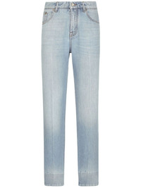 mid-rise boyfriend-fit jeans Speaking to Dolce & Gabbana's penchant for high-octane branding, these light blue jeans are emblazoned at the rear with a metallic logo plaque. They're cut in Italy from cotton denim to a slouchy boyfriend silhouette. Highlights - Light blue - Cotton - Denim - Mid-rise - Belt loops - Concealed fly and button fastening - Classic five pockets - Boyfriend cut - Logo plaque Made in Italy Composition Cotton 100% Washing instructions Read Manufacturer Guidelines
