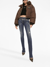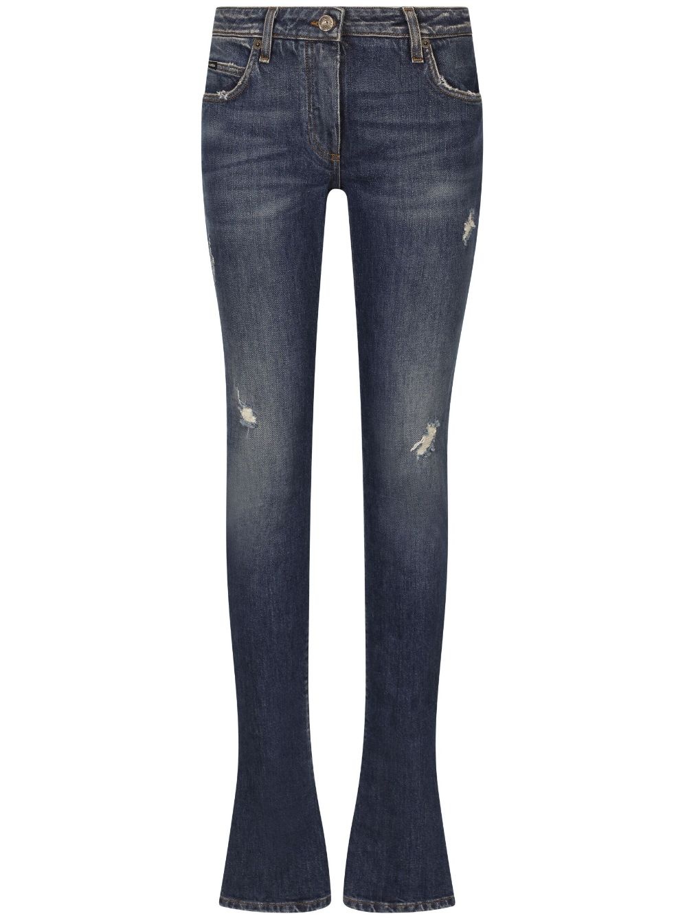 mid-rise slim-cut jeans Highlights - Blue - Stretch-cotton - Washed denim - Ripped detailing - Logo plaque - Belt loops - Button fly fastening - Mid-rise - Slim cut - Classic five pockets - Straight hem Made in Italy Composition Cotton 98%, Spandex/Elastane 2% Washing instructions Read Manufacturer Guidelines