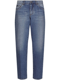 mid-rise straight-leg jeans Highlights - Blue - Cotton - Denim - Whiskering effect at the thighs - Belt loops - Logo patch to the rear - Mid-rise - Classic five pockets - Straight leg Made in Italy Composition Cotton 100%