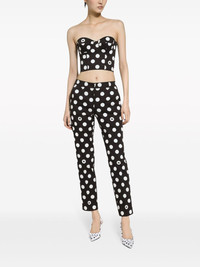 mid-rise straight-leg trousers Highlights - Black/white - Stretch-cotton - Polka dot print - All-over logo print - Mid-rise - Concealed front fastening - Two side slit pockets - Straight leg - Cropped leg Made in Italy Composition Cotton 97%, Elastane 3% SIZE & FIT FittingInformation Designed for a slim fit, these trousers offer a close fit at the waist, allowing a comfortable close fit and some movement over the leg