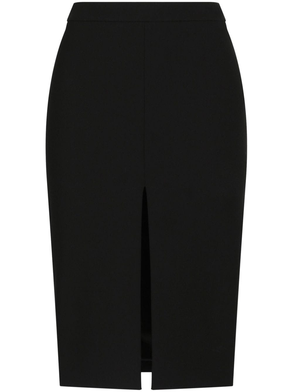 midi pencil skirt Highlights - Black - Virgin wool blend - Front slit - Knee-length - Rear zip fastening Made in Italy Composition Outer: Virgin Wool 60%, Polyamide 37%, Spandex/Elastane 3% Lining: Silk 92%, Spandex/Elastane 8%