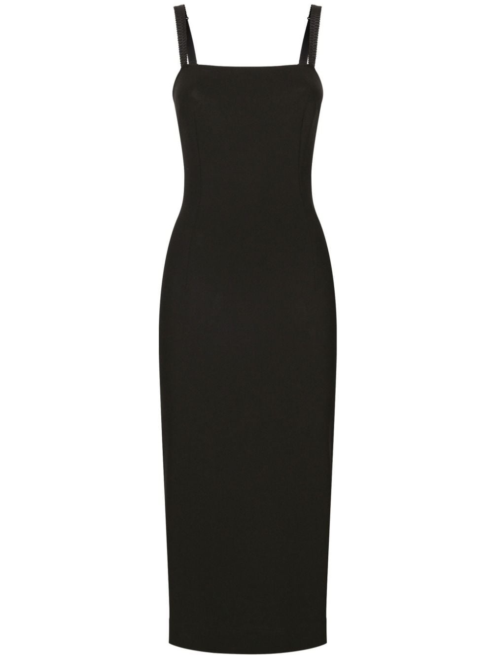 Milano-stitch midi dress Highlights - Black - Silk blend - Square neck - Concealed rear zip fastening - Adjustable shoulder straps - Rear slit - Mid-length Made in Italy Composition Viscose 65%, Polyamide 25%, Elastane 5%, Silk 5% Washing instructions Read Manufacturer Guidelines