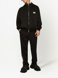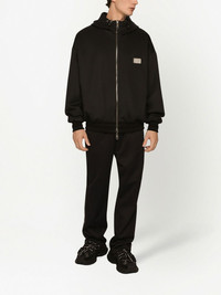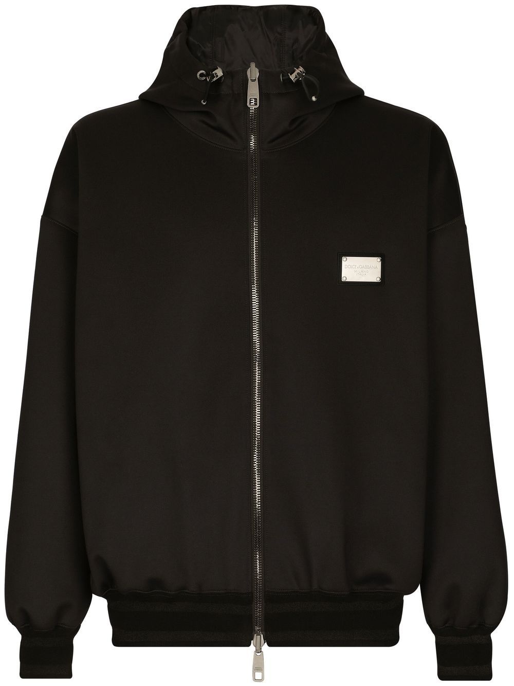 logo-tag reversible hooded jacket Highlights - Monogram hooded padded jacket from dolce & gabbana featuring black, padded design, monogram print, logo plaque, classic hood, front zip fastening, long sleeves, fitted-cuff sleeves and straight hem. Made in Italy Composition Nylon 100%, Polyester 95%, Spandex/Elastane 5%