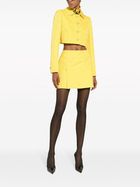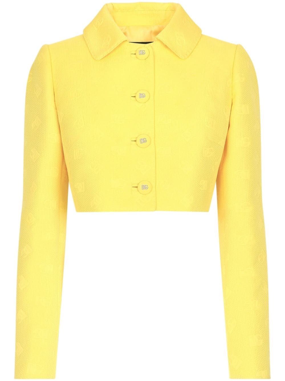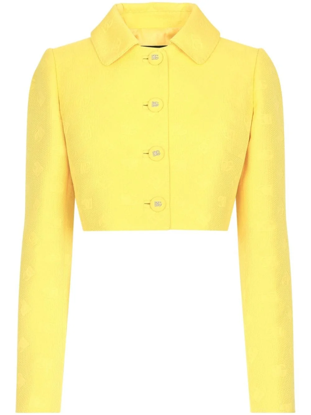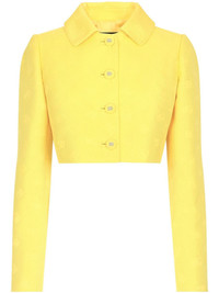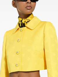 monogram-jacquard button-down cropped jacket Highlights - Canary yellow - Monogram jacquard - Cropped - Logo-embossed buttons - Classic collar - Front button fastening - Long sleeves - Straight hem Made in Italy Composition Cotton 43%, Polyester 34%, Silk 23% Washing instructions Read Manufacturer Guidelines