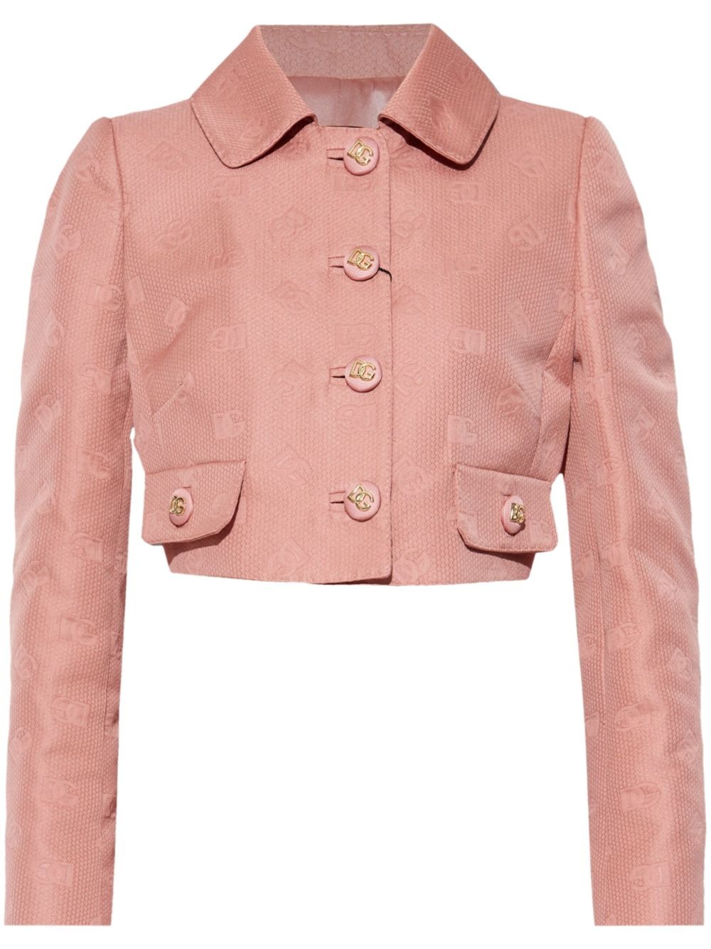 DNA monogram-jacquard jacket Highlights - Blush pink - Front button fastening - Buttoned cuffs - Decorative button flap - Cropped Made in Italy Composition Outer: Cotton 44%, Polyester 32%, Silk 24% Lining: Silk 100%