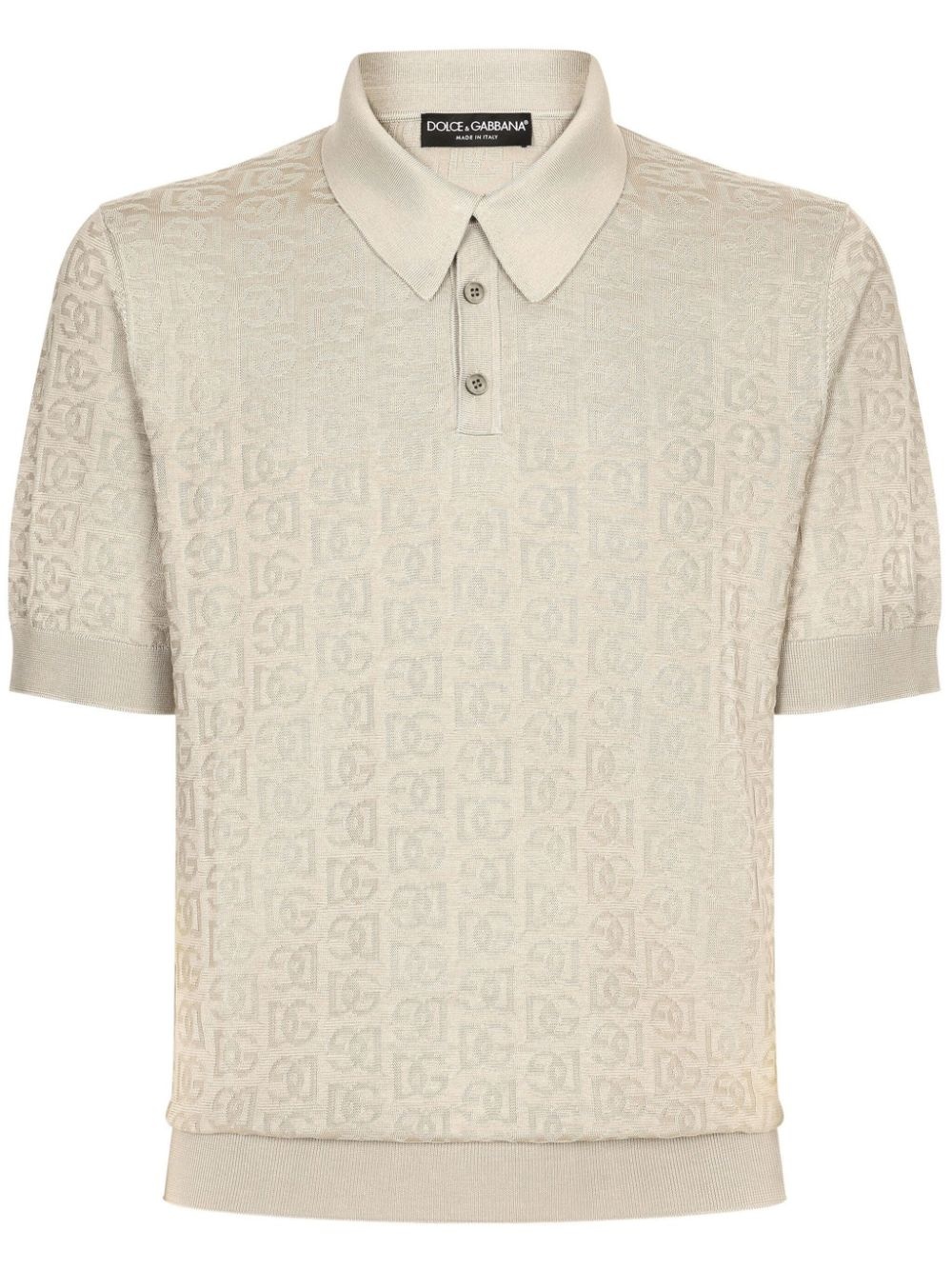 monogram-jacquard silk polo shirt Highlights - Beige - Silk - Fine knit - Monogram jacquard - Polo collar - Front button placket - Short sleeves - Ribbed edge - Straight hem Made in Italy Composition Silk 100%