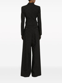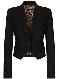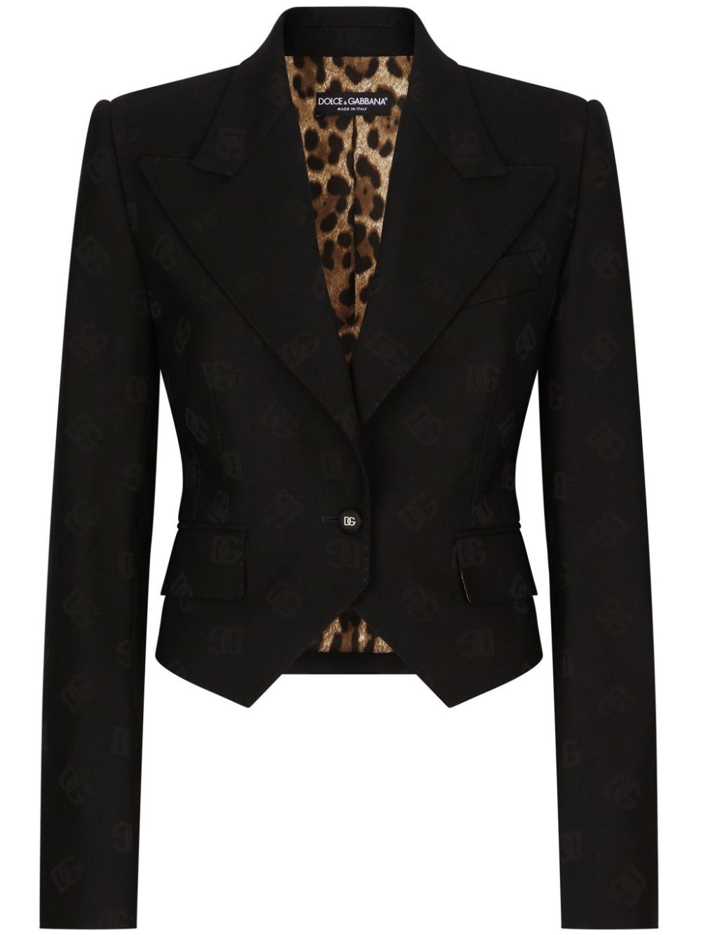 monogram-jacquard single-breasted blazer Highlights - Black - Wool blend - Monogram jacquard - Cropped - Wide notch lapels - Front button fastening - Long sleeves - Buttoned cuffs - Chest welt pocket - Two front flap pockets - Asymmetric hem Made in Italy Composition Wool 65%, Virgin Wool 35% Washing instructions Read Manufacturer Guidelines