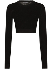 monogram open-knit crop top Highlights - Jet black - Monogram pattern - Open knit - Crew neck - Long sleeves - Ribbed cuffs and hem - Straight hem - Cropped Made in Italy Composition Viscose 83%, Polyester 17%