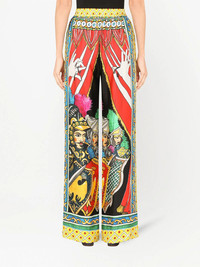 Carretto-print pajama bottoms More is more, just ask Dolce & Gabbana. In an all-over multicolour print, these palazzo pants guarantee a wide range of motion and maximum style. Get ready for the compliments. Highlights - Multicolour - Silk - Multi-panel design - Multicolour print - High waist - Wide leg Made in Italy Composition Silk 100% SIZE & FIT Measurement INSIDE LEG 30.31 in(77 cm) HIPS 42.51 in(108 cm) WAIST 29.13 in(74 cm) Measurement INSIDE LEG 30.31 in(77 cm) HIPS 40.94 in(104 cm) WAIST 26.77 in(68 cm)