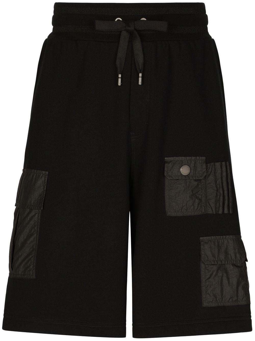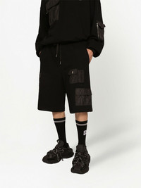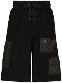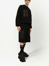 multi-pocket drawstring Bermuda shorts black cotton blend jersey fleece embroidered logo drawstring fastening waist knee-length two front flap pockets Made in Italy Composition Cotton 90%, Nylon 10%