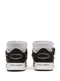 New Roma fray-trim sneakers A signature style of Dolce & Gabbana, the New Roma sneakers are the embodiment of the brand's premium construction. This refreshing iteration is decorated with tonal frayed that adds a sense of ruggedness to the classic lace-up silhouette. Highlights - Black/white - Cotton blend - Frayed detailing - Logo patch at the tongue - Round toe - Front lace-up fastening - Branded insole - Flat rubber sole Made in Italy Composition Lining: Cotton 80%, Goat Skin 10%, Polyester 7%, Rubber 3% Outer: Polyester 100% Sole: Rubber 100%