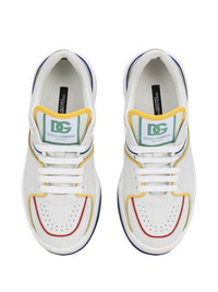 New Roma low-top sneakers These New Roma sneakers are the embodiment of DOLCE & GABBANA's impeccable leatherwork thanks to their premium construction. This iteration showcases a multicolour contrasting trim for an eye-catching finish. Highlights - White/multicolour - Calf leather - Contrasting trim - Perforated detailing - Logo patch at the tongue - Round toe - Front lace-up fastening - Branded insole - Flat rubber sole Made in Italy Composition Leather 100%