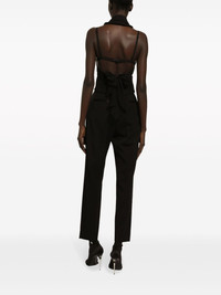open-back virgin wool-blend waistcoat Highlights - Black - Virgin wool-silk blend - Wide peak lapels - V-neck - Double-breasted button fastening - Sleeveless - Open back - Rear tie fastening - Straight hem Made in Italy Composition Virgin Wool 70%, Silk 23%, Polyester 7% Washing instructions Read Manufacturer Guidelines