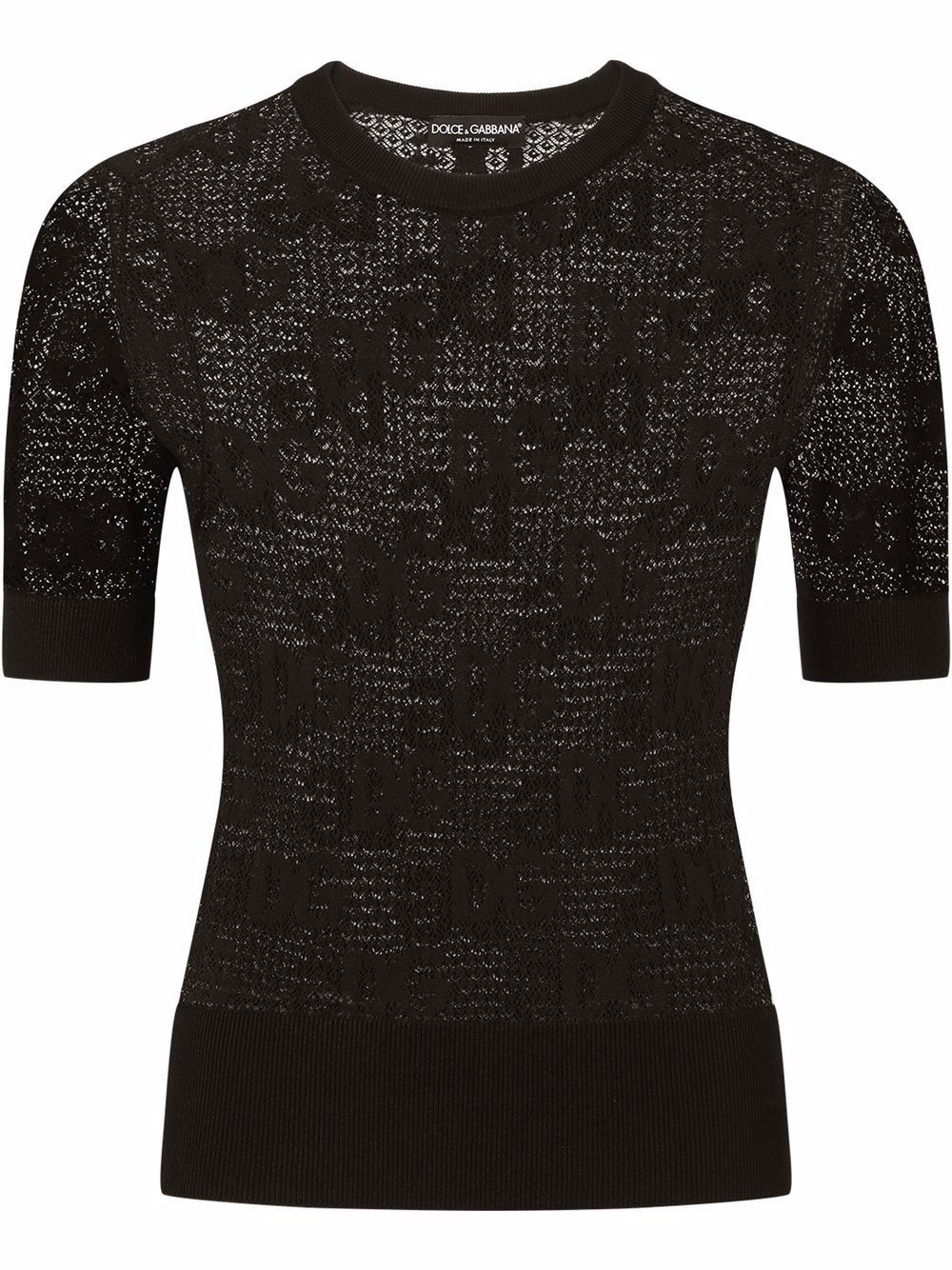 DG-logo lace-stitch jumper black open-work jacquard logo motif straight hem round neck short sleeves Made in Italy Composition Outer: Rayon 96%, Polyester 4%