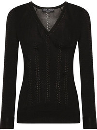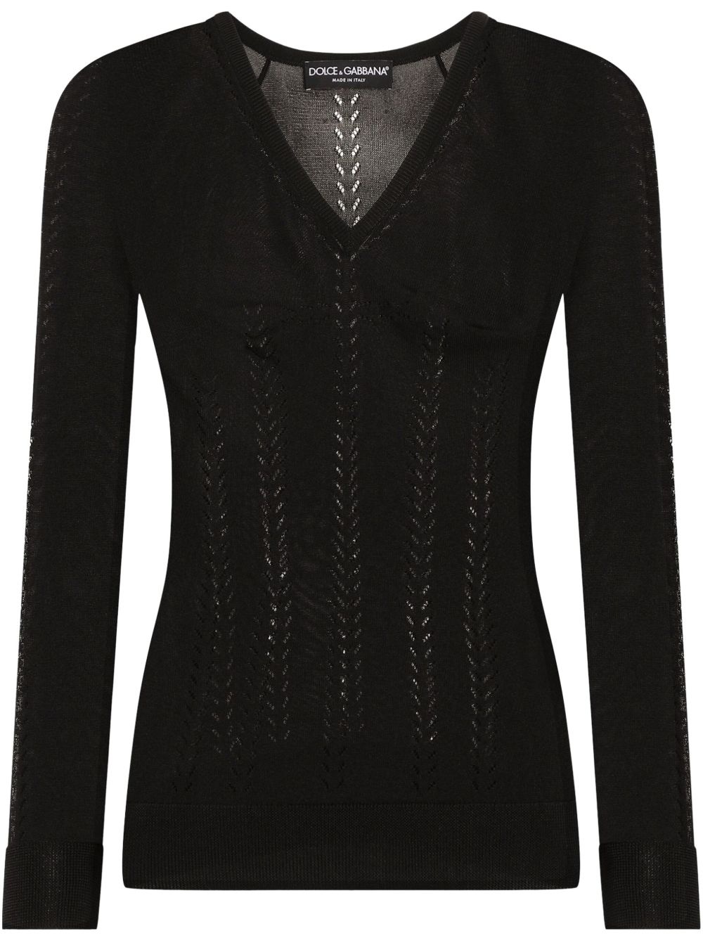 openwork-areas sweater Highlights - Black - Ribbed cuffs and hem - V-neck - Straight hem Made in Italy Composition Outer: Silk 97%, Polyamide 2%, Spandex/Elastane 1%