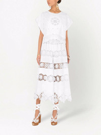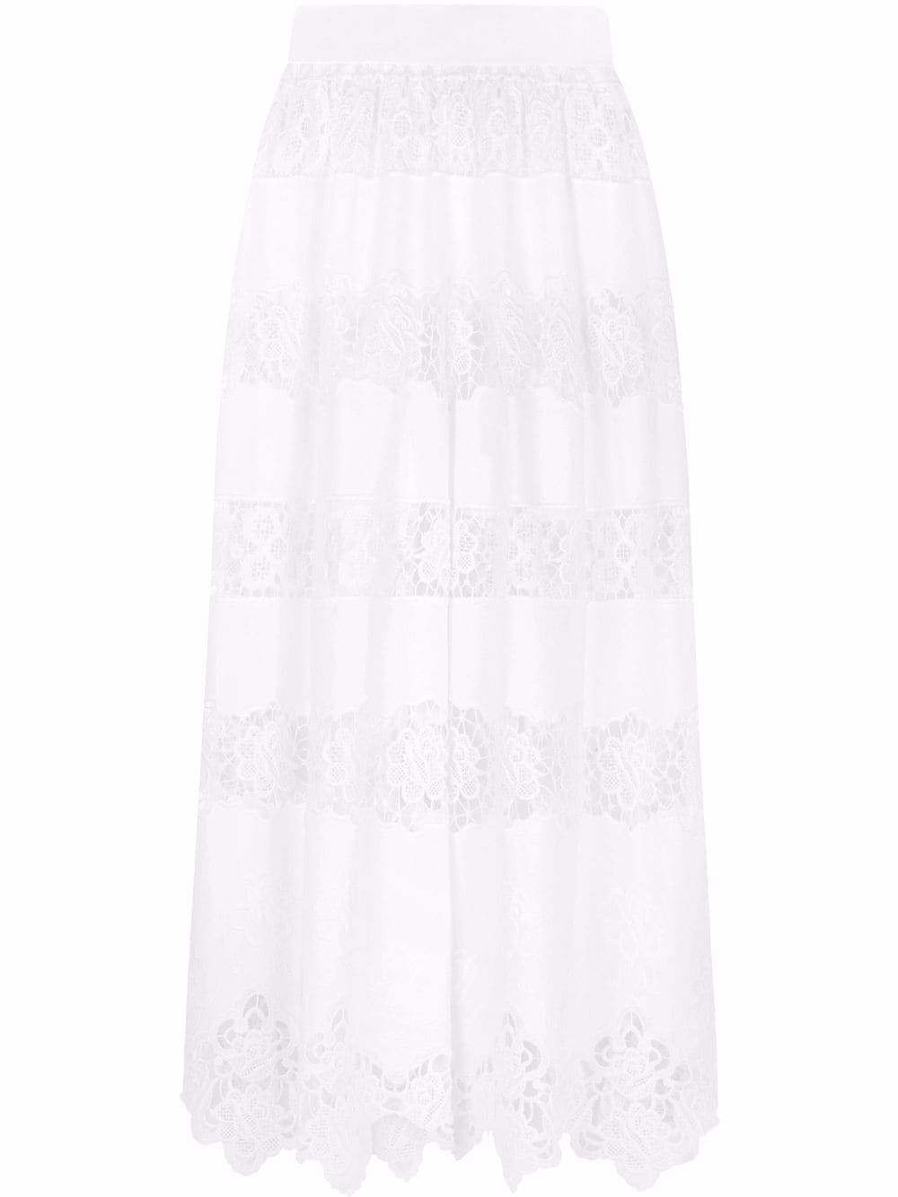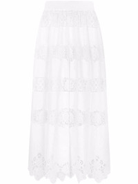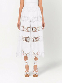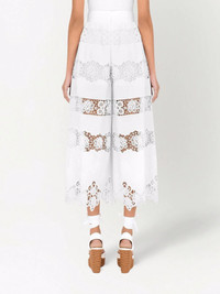 embroidered culotte trousers Highlights - White - Cotton - High-waisted - Panelled design - Floral-lace detailing - Openwork areas - High-waisted - Elasticated waistband - Wide leg - Cropped leg - Scallop edge Made in Italy Composition Outer: Cotton 90%, Spandex/Elastane 10% Lining: Cotton 100%