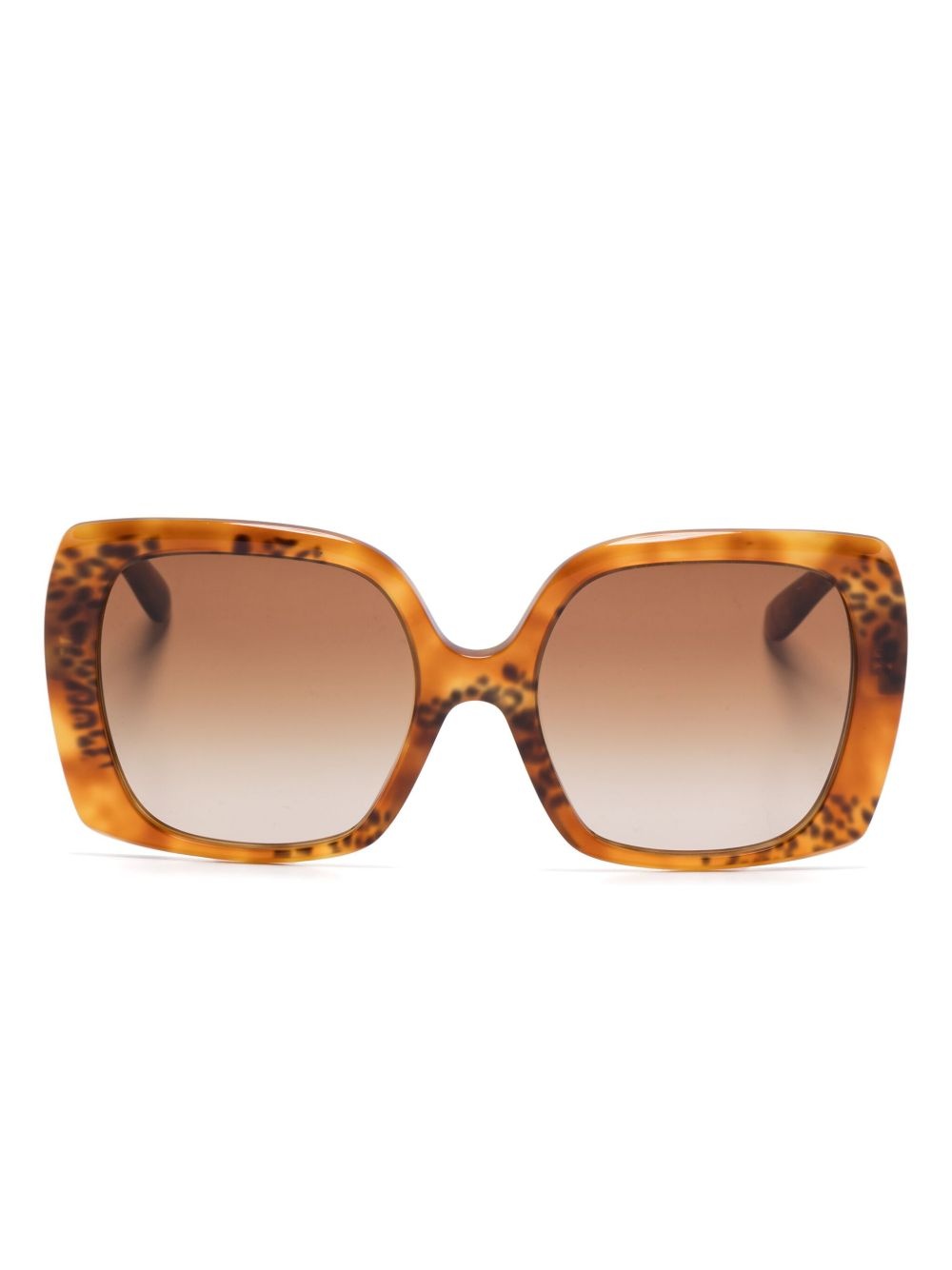 oversize-frame sunglasses Highlights - Animalier brown - Uv-protective lenses - Nose pads - Curved tips - These glasses come with a protective case. Made in Italy Composition Acetate 100% SIZE & FIT Measurement Arm Length 5.7 in(14.5 cm) Bridge Width 0.74 in(1.9 cm) Lens Diameter 2.2 in(5.6 cm) Total Width 5.9 in(15 cm)