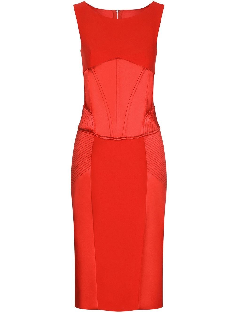 corset-detail satin midi dress Boasting a panelled lower bodice, the design of this midi dress from Dolce & Gabbana riffs on lingerie styles, whilst creating a futuristic structure for the sleeveless silhouette. Highlights - Red - Stretch-design - Panelled bodice - Round neck - Sleeveless - Rear zip fastening - Mid-length Made in Italy Composition Lining: Silk 92%, Spandex/Elastane 8% Outer: Acetate 65%, Nylon 29%, Spandex/Elastane 6%