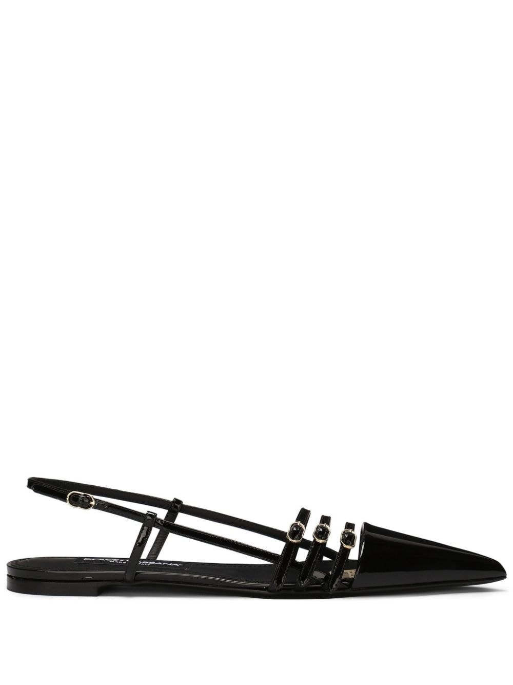 patent-finish leather ballerina shoes Highlights - Black - Calf leather - Patent finish - Buckle-detail toe strap - Pointed toe - Buckle-fastening ankle strap - Branded insole - Flat sole Made in Italy Composition Outer: Calf Leather 100% Lining: Goat Skin 76%, Calf Leather 24% Sole: Calf Leather 100%