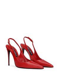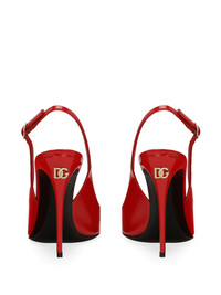 105mm patent-finish leather pumps Highlights - Brick red - Calf leather - Patent finish - Gold-tone logo plaque - Pointed toe - Buckle-fastening slingback strap - Branded leather insole - 105mm stiletto heel Made in Italy Composition Lining: Calf Leather 100% Outer: Calf Leather 100% Sole: Calf Leather 100%
