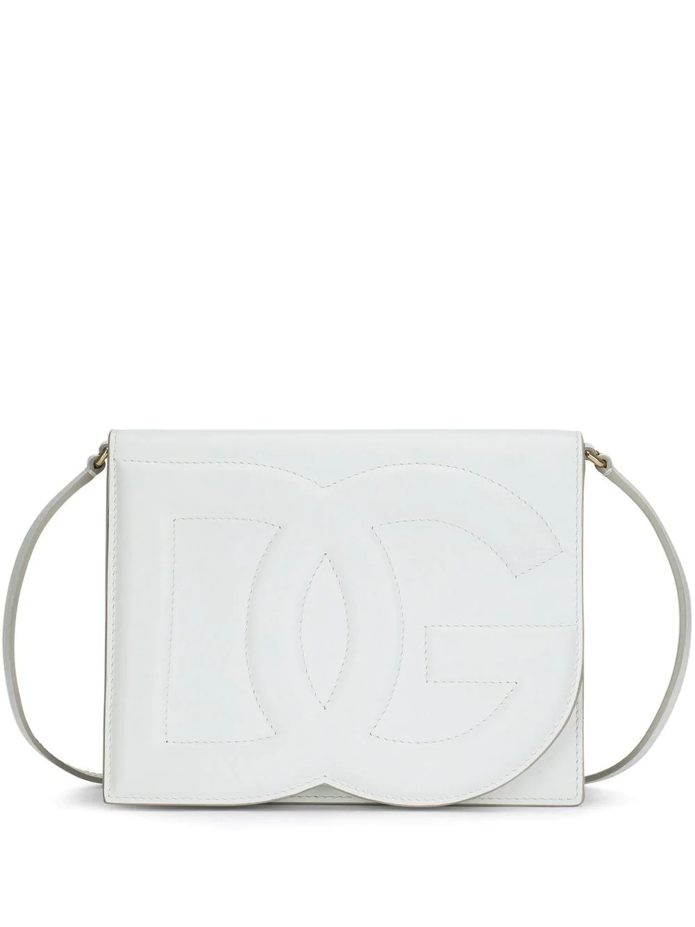 DG Logo leather cross body bag Highlights - White - Calf leather - Embossed logo to the front - Gold-tone hardware - Adjustable shoulder strap - Foldover top with magnetic fastening - Main compartment - Internal zip pocket Made in Italy Composition Outer: Calf Leather 100% Lining: Polyester 56%, Calf Leather 20%, Polyurethane 16%, Rayon 5%, Nylon 2%, Elastane 1% SIZE & FIT Measurement DEPTH 2.16 in(5.5 cm) HEIGHT 6.29 in(16 cm) WIDTH 7.87 in(20 cm)