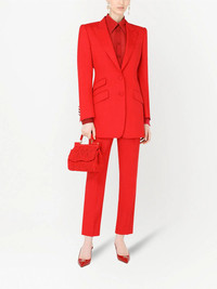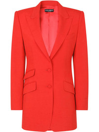 single-breasted silk-blend blazer Presented in a vibrant red hue, this tailored blazer seamlessly captures Dolce & Gabbana’s glamorous design approach. A timeless silhouette, it has been crafted from a soft cotton and silk blend and accented with multiple flap pockets. Highlights - Raspberry red - Silk-cotton blend - Peak lapels - Front button fastening - Chest welt pocket - Front flap pockets - Long sleeves - Buttoned cuffs - Tonal stitching - Full lining - English rear vents - Long length Made in Italy Composition Silk 70%, Cotton 30% SIZE & FIT Measurement SLEEVE LENGTH 24.8 in(63 cm) LENGTH 33.46 in(85 cm)