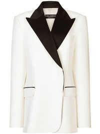 peak-lapel single-breasted blazer Highlights - White/black - Wide peak lapels - Off-centre front button fastening - Two front flap pockets - Chest welt pocket - Shoulder pads - Long sleeves - Buttoned-cuff sleeves - Straight hem Made in Italy Composition Rayon 76%, Silk 17%, Polyester 5%, Spandex/Elastane 2% Washing instructions Read Manufacturer Guidelines