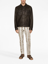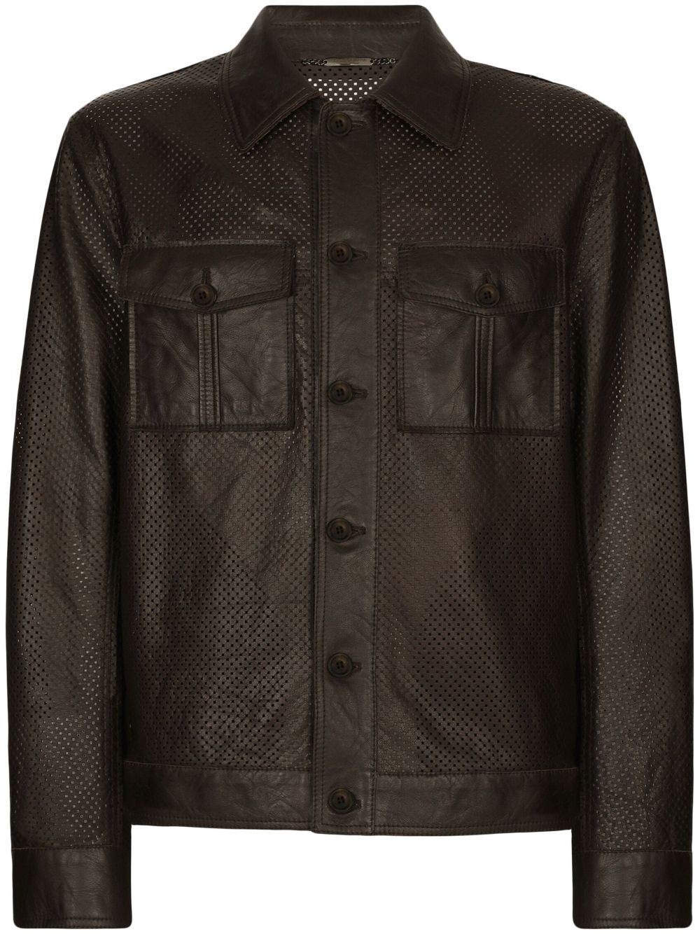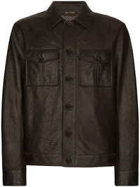 perforated leather shirt jacket Combining timeless Italian design with a contemporary edge, this shirt jacket from Dolce & Gabbana is crafted from smooth lambskin leather and detailed with small perforations throughout. Highlights - Brown - Lambskin - Perforated design - Classic collar - Front button fastening - Two button-fastening chest pockets - Long sleeves - Buttoned cuffs - Straight hem Made in Italy Composition Lambskin 100% Washing instructions Read Manufacturer Guidelines