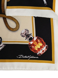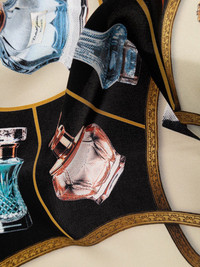 perfume bottle-print scarf Highlights - Black - Square shape - Contrasting border - Logo-print edge Made in Italy Composition Silk 100% SIZE & FIT Measurement LENGTH 25.59 in(65 cm) WIDTH 25.59 in(65 cm)