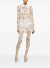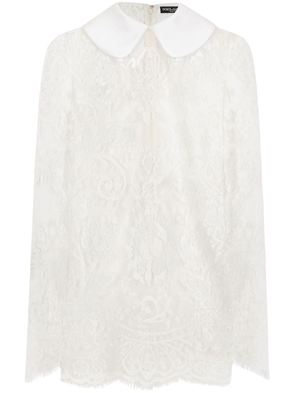 satin-neck lace mini dress Highlights - White - Floral-lace detailing - Satin baby collar - Long sleeves - Rear zipper and hook-eye fastening - Stretch silk crepe de chine slip - The piece measures 43 cm from the waist down on a size it 40. - The model is 175 cm tall and wears a size it 40. Made in Italy Composition Outer: Cotton 74%, Polyamide 16%, Silk 8%, Polyester 2% Inner: Spandex/Elastane 9% Silk 91% SIZE & FIT Measurement SLEEVE LENGTH 25.98 in(66 cm) HIPS 37.79 in(96 cm) LENGTH 34.25 in(87 cm) WAIST 28.34 in(72 cm) Washing instructions Read Manufacturer Guidelines