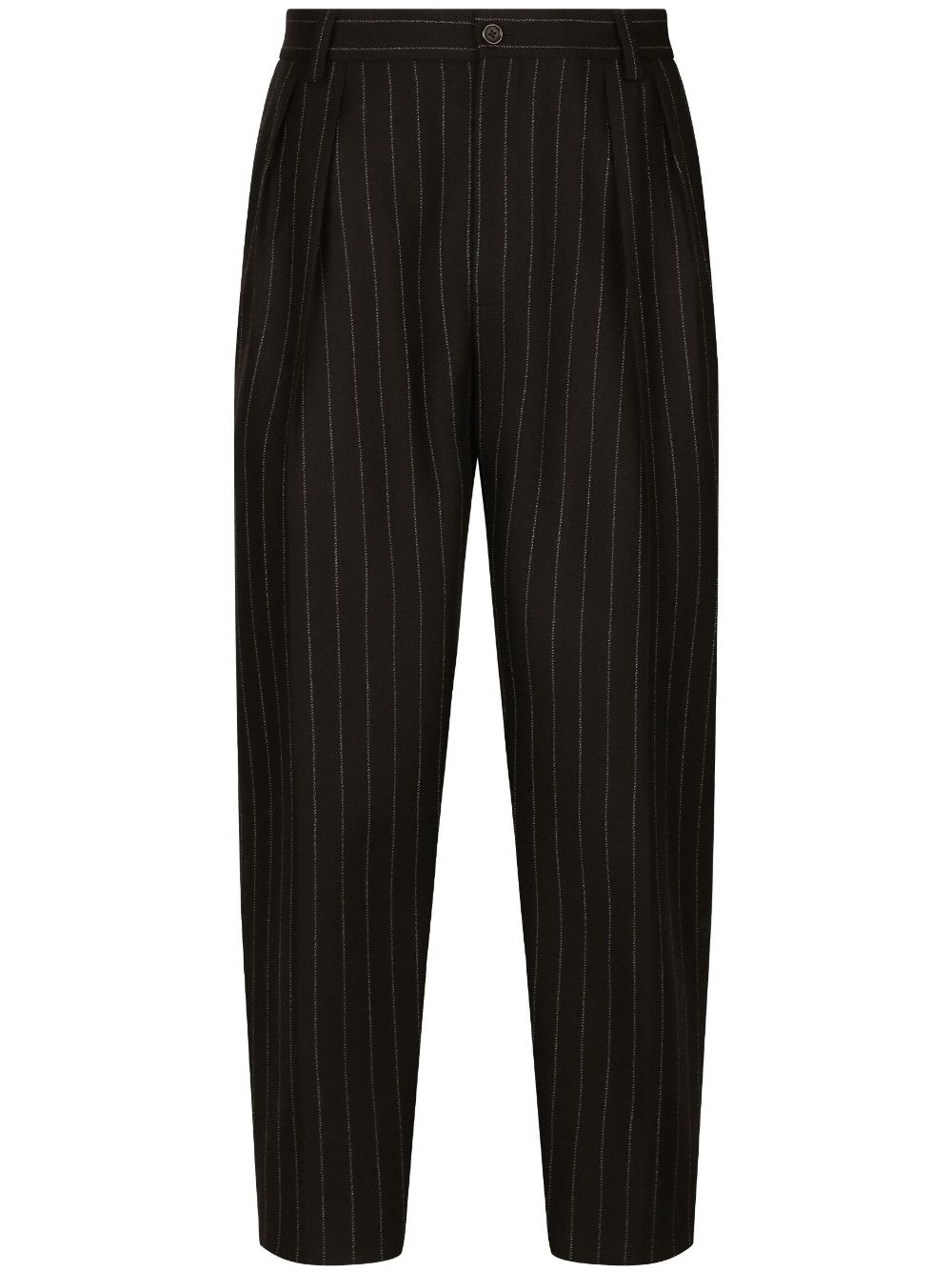 pinstripe wool tapered trousers Highlights - Black - Wool - Pinstripe pattern - Box-pleat detail - Belt loops - Tapered leg - Concealed fly and button fastening - Two side inset pockets - Two rear button-fastening jetted pockets Made in Italy Composition Wool 100%
