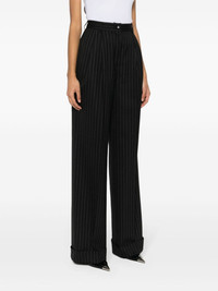 pinstriped wide-leg trousers Spun in Italy from a midweight blend of virgin wool, these black trousers from Dolce & Gabbana are emblazoned with a classic pinstripe pattern that alludes to the house's exploration of timeless tailoring styles. They sit high at the waist and fall to a wide leg. Highlights - Black, white - Virgin wool blend - Pinstripe pattern - Belt loops at the waist - Logo-engraved buttons - Pleat detailing to the front - Two side slash pockets - Pressed crease - Rear button-fastening jetted pocket - Internal logo tag - Straight leg - Turn-up hem - Front button and zip fastening Made in Italy Composition Virgin Wool 96%, Elastane 2%, Polyester 2% SIZE & FIT Model measurements Height 5 ft 9 in(1.76 m) Bust/Chest 31.88 in(81 cm) Hips 35.43 in(90 cm) Waist 22.44 in(57 cm) FittingInformation Designed with a wide-leg cut, these trousers allow for a close fit at the waist and offer a loose and roomy fit over the leg Made from a midweight stretch fabric, this piece offers elasticity and flexibility when worn This piece fits true to size – take your usual size