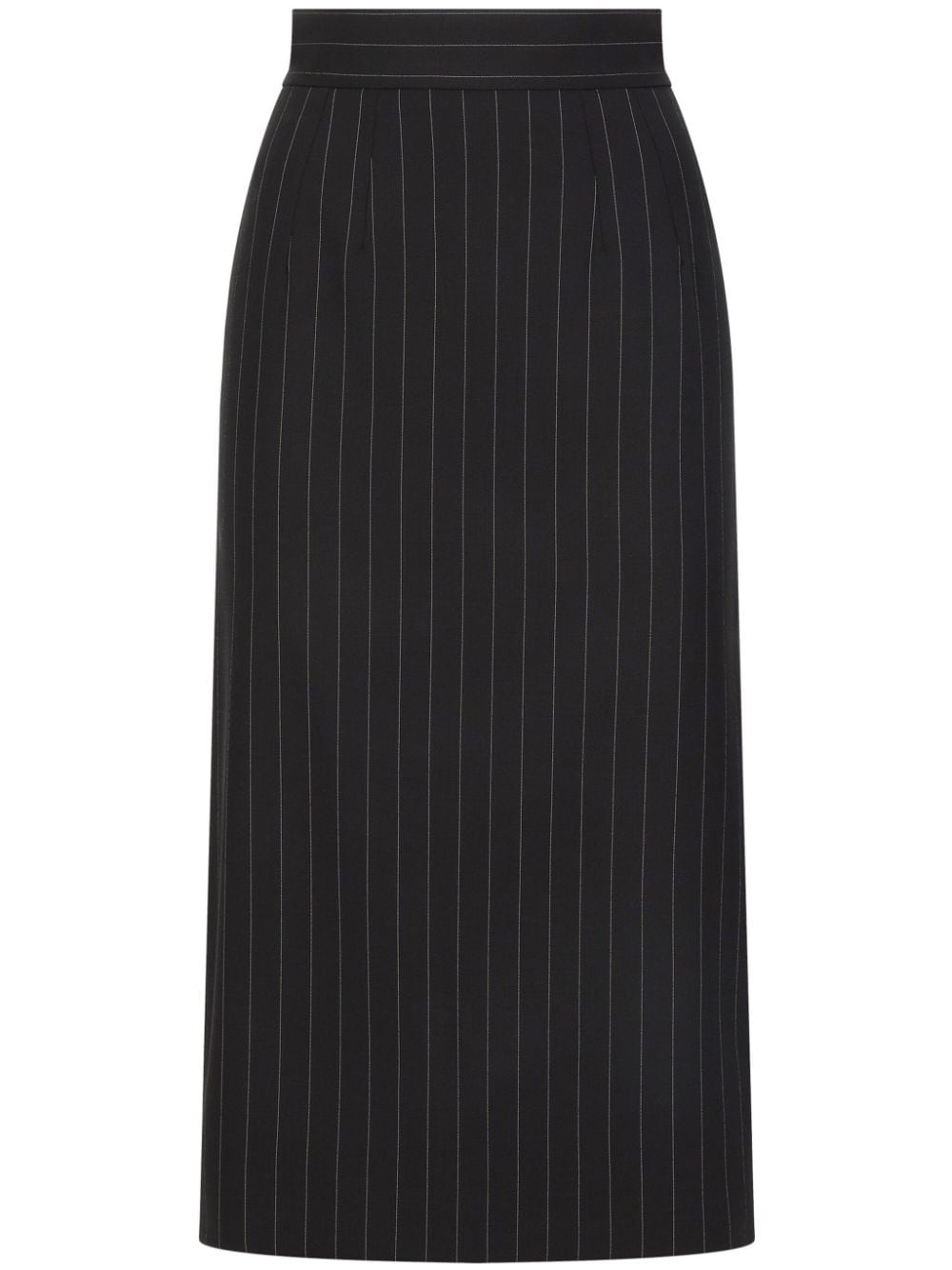 Pinstripe wool calf-length skirt