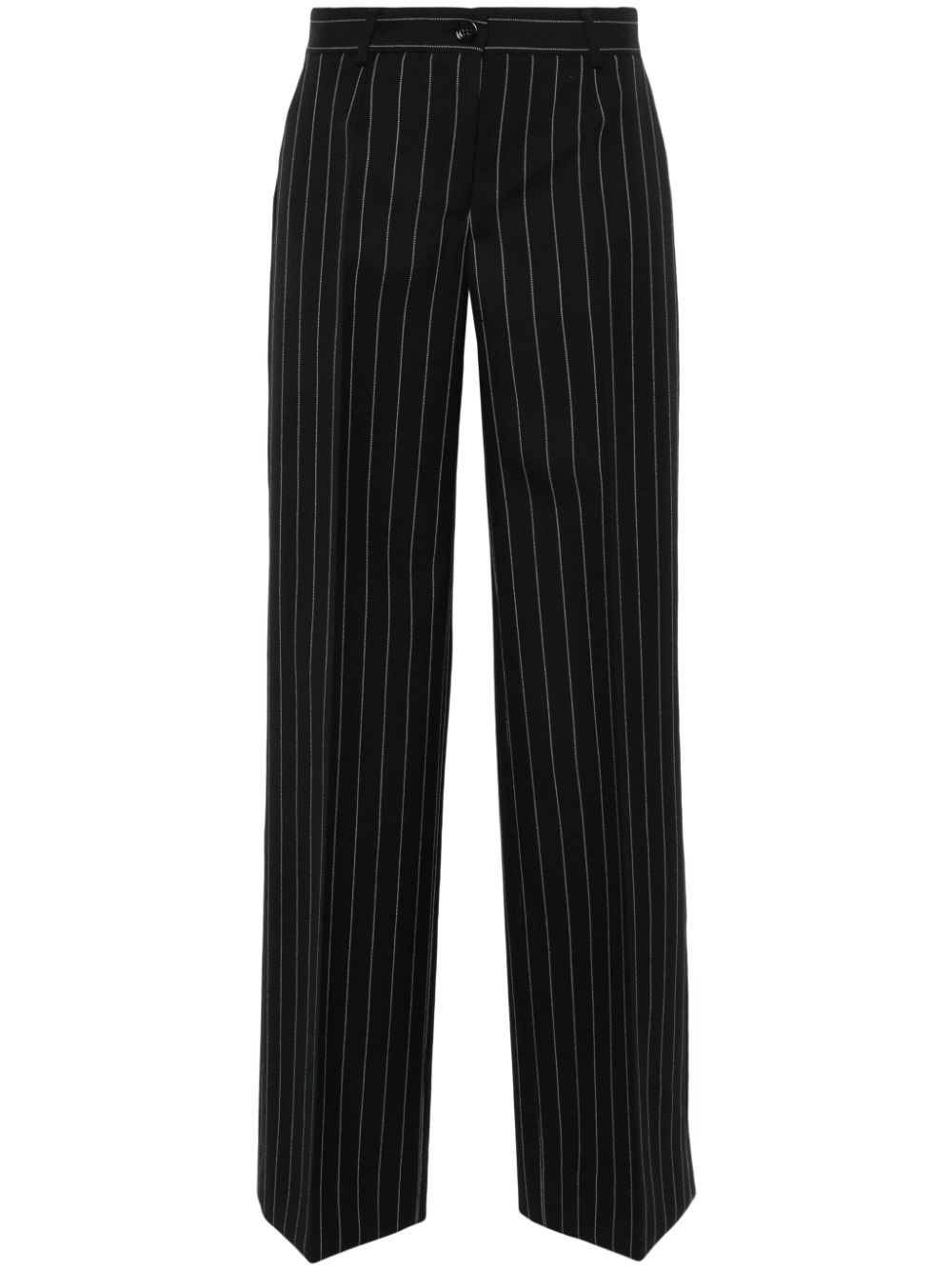 pinstriped straight-leg trousers Dolce & Gabbana honours the tradition of impeccable Italian tailoring with these black trousers. They're made from virgin wool twill to a straight-leg silhouette solely detailed with a pinstripe pattern. Pressed creases round out the sophisticated profile. Highlights - Black/white - Virgin wool - Twill weave - Pinstripe pattern - High waist - Belt loops - Two side slash pockets - Pressed crease - Full-length - Two rear button-fastening jetted pockets - Straight leg - Concealed fly and button fastening Made in Italy Composition Virgin Wool 100% SIZE & FIT Model measurements Height 5 ft 11 in(1.8 m) Bust/Chest 30.7 in(78 cm) Hips 35.03 in(89 cm) Waist 24.4 in(62 cm) Measurement FRONT RISE 9.44 in(24 cm) HIPS 37.79 in(96 cm) WAIST 29.92 in(76 cm) FittingInformation Designed for a straight-leg fit, these trousers allow for a close fit at the waist and an unrestricted, comfortable fit over the leg Made from a midweight non-stretch fabric This piece fits true to size – take your usual size