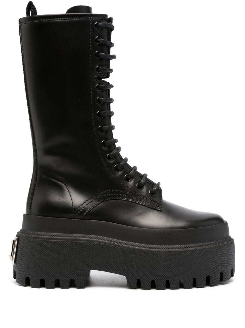 platform leather combat boots Highlights - Black - Calf leather - Gold-tone logo plaque - Pull-tab at the heel - Round toe - Side zip fastening - Front lace-up fastening - Branded leather insole - Platform sole - Chunky rubber lug sole Made in Italy Composition Leather 100% SIZE & FIT Measurement HEEL 3.93 in(10 cm) HEIGHT 9.05 in(23 cm) PLATFORM 2.75 in(7 cm)