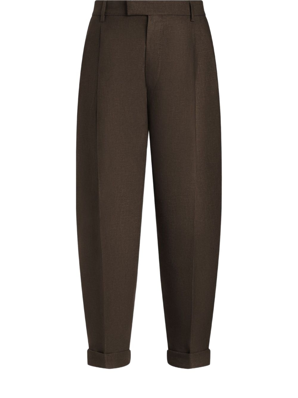 pleat-detailing trousers Highlights - Cedar brown - Concealed front fastening - Two side slit pockets - Two rear jetted pockets - Drop crotch Made in Italy Composition Linen/Flax 100%