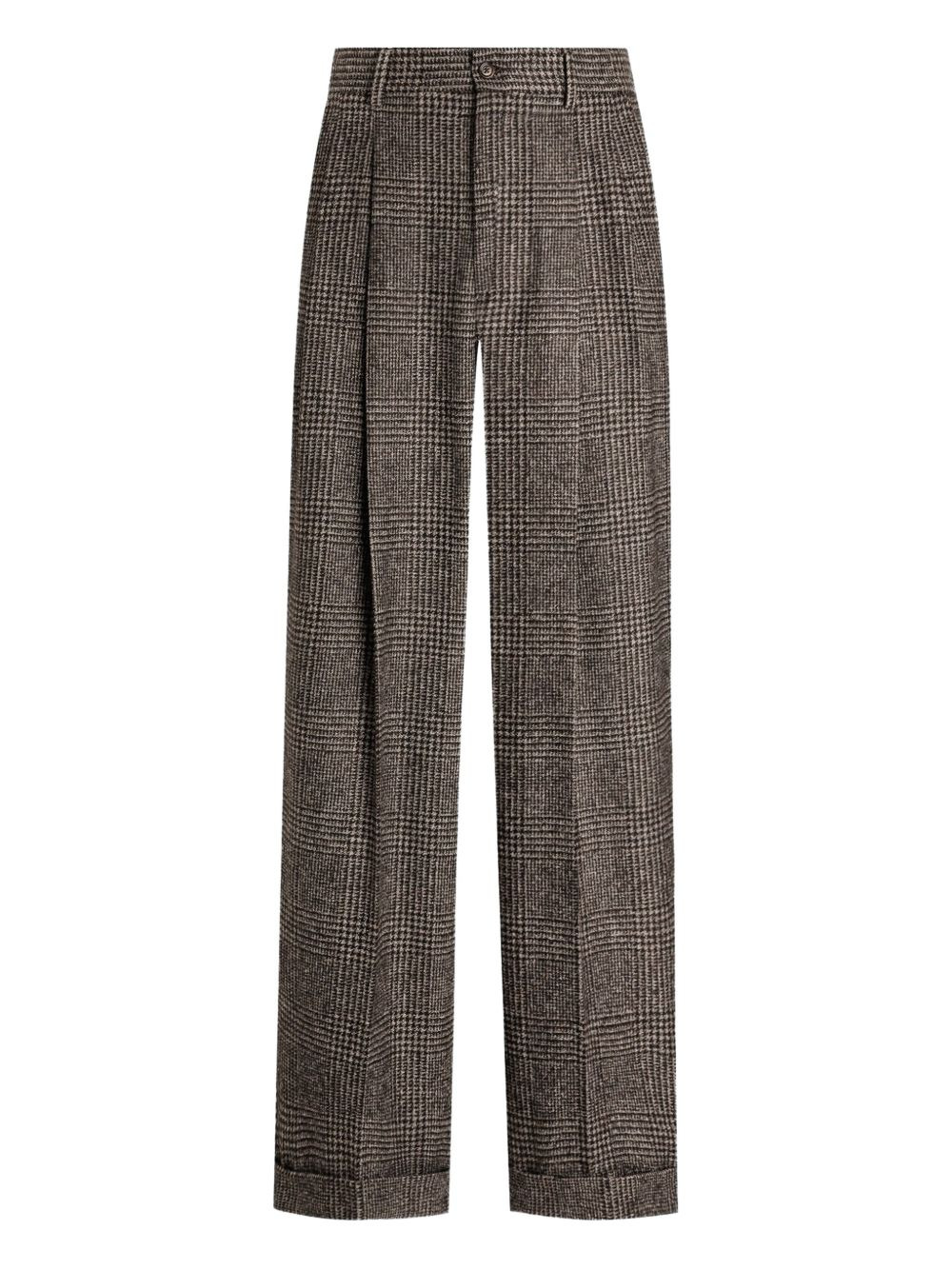 pleated check wide-leg trousers Highlights - Grey - Check pattern - Pleated front - Wide leg - Turn-up hems Made in Italy Composition Alpaca 28%, Wool 27%, Cotton 25%, Polyamide 20% Washing instructions Read Manufacturer Guidelines