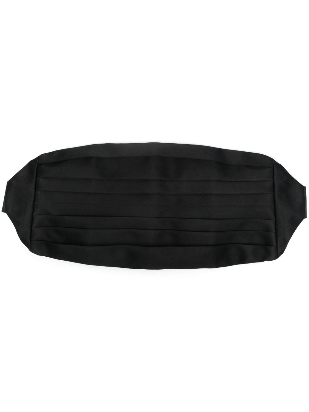 pleated cummerbund Highlights - Black - Silk blend - Satin finish - Stretch-design - Pleat detailing - Rear hook and eye fastening - Boned bodice - Adjustable fit Made in Italy Composition Outer: Silk 78%, Polyester 22% Lining: Silk 100% SIZE & FIT Measurement Maximum Length 27.55 in(70 cm) Minimum Length 25.59 in(65 cm) WIDTH 8.66 in(22 cm)