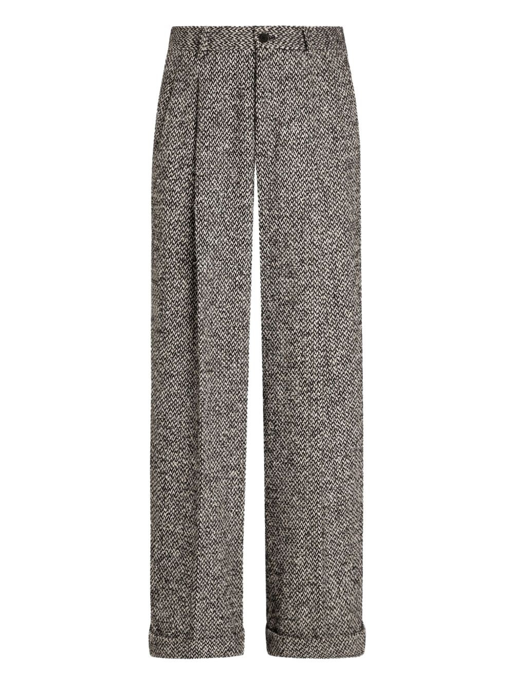 pleated-front herringbone trousers