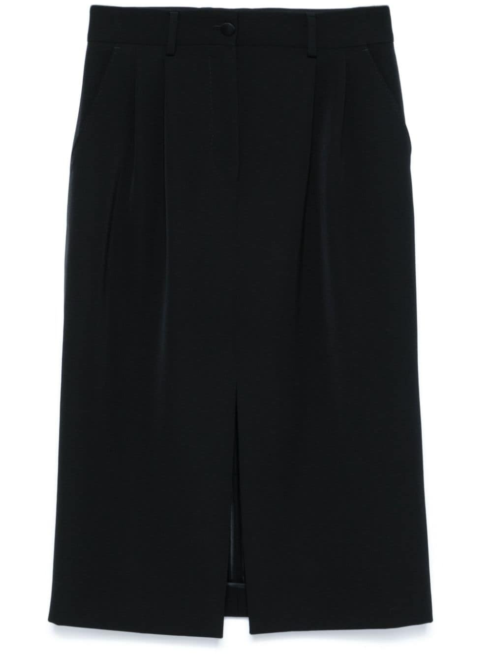pleated midi skirt Highlights - Black - Virgin wool blend - Textured finish - Pleat detailing - Front button and zip fastening - Belt loops - Two side slash pockets - Front slit - Two rear button-fastening jetted pockets - Straight hem - Mid-length Made in Italy Composition Virgin Wool 90%, Silk 8%, Polyester 2% SIZE & FIT Model measurements Height 5 ft 11 in(1.8 m) Bust/Chest 32.67 in(83 cm) Hips 35.82 in(91 cm) Waist 25.98 in(66 cm) FittingInformation This midi-length skirt is intended to be worn high on the waist Made from a midweight non-stretch fabric