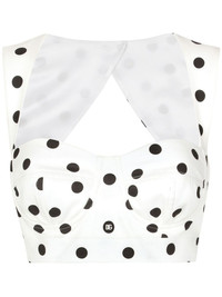 polka-dot corset top Highlights - White/black - Stretch-cotton - Polka dot print - Sweetheart neck - Sleeveless - Concealed rear zip fastening - Open back - Cropped Made in Italy Composition Lining: Cotton 97%, Elastane 3% Outer: Cotton 97%, Elastane 3% SIZE & FIT Measurement LENGTH 13.38 in(34 cm) WAIST 35.43 in(90 cm) FittingInformation Designed for a close fit throughout
