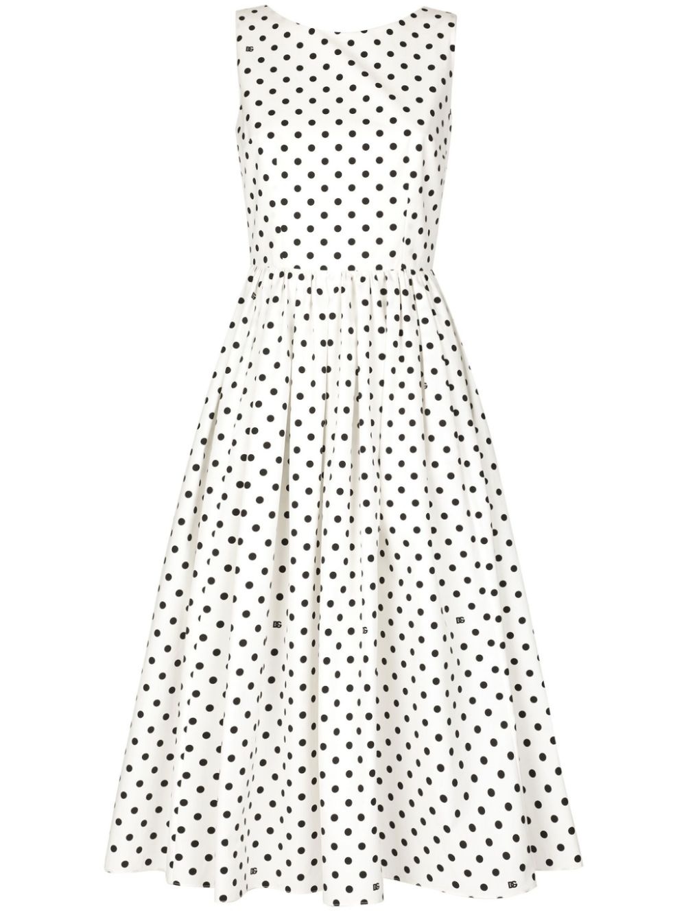 polka-dot cotton midi dress Highlights - White/black - Cotton - Polka dot print - Boat neck - Concealed rear zip fastening - Sleeveless - Mid-length Made in Italy Composition Cotton 100% SIZE & FIT Measurement HIPS 53.54 in(136 cm) LENGTH 46.06 in(117 cm) WAIST 25.98 in(66 cm) FittingInformation Designed for a close fit at the chest and waist with a loose fit at the hip