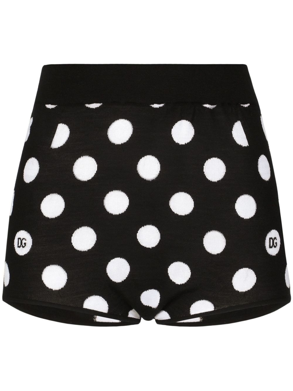 polka dot-pattern high-waisted shorts Highlights - Black/white - Virgin wool-silk blend - Polka dot print - All-over logo print - Elasticated waistband - Rear zip fastening - Thigh-length Made in Italy Composition Virgin Wool 58%, Silk 42% SIZE & FIT FittingInformation Designed for a slim fit that sits just away from the body offering a close yet comfortable fit Washing instructions Read Manufacturer Guidelines