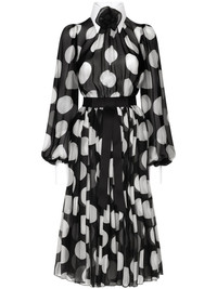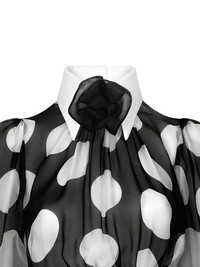 polka-dot print dress Highlights - Black/white - Silk blend - Semi-sheer construction - Polka dot print - Bow detailing - Floral applique - Gathered detailing - Classic collar - Long balloon sleeves - Contrasting cuffs - Flared hem Made in Italy Composition Lining: Silk 76%, Cotton 16%, Spandex/Elastane 4%, Polyamide 4% Outer: Cotton 80%, Polyamide 20% Washing instructions Read Manufacturer Guidelines