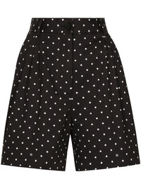 polka dot-print tailored shorts Highlights - Black/white - Cotton blend - Polka dot print - Pleat detailing - High-waisted - Belt loops - Concealed fly and button fastening - Two side slit pockets - Above-knee length Made in Italy Composition Cotton 97%, Elastane 3% SIZE & FIT FittingInformation Designed for a loose fit, offering comfort and movement when worn