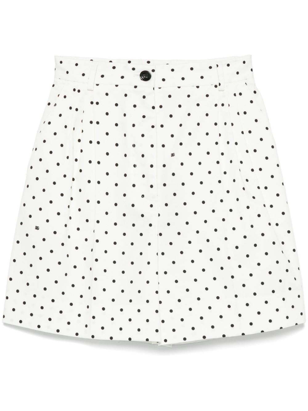 polka-dot shorts Highlights - White - Concealed fly and button fastening - Two side slit pockets - Two rear button-fastening jetted pockets - Box-pleat detail Made in Italy Composition Cotton 97%, Elastane 3% SIZE & FIT Model measurements Height 5 ft 11 in(1.8 m) Bust/Chest 33.07 in(84 cm) Hips 37.4 in(95 cm) Waist 25.19 in(64 cm) FittingInformation Designed for a relaxed, roomy fit Made from a midweight stretch fabric, this piece offers elasticity and flexibility when worn